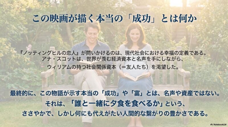 ジュリア・ロバーツ演じるアナとヒュー・グラント演じるウィリアムがたどり着いた結末、そこで交わされた英語のセリフには、単なる言葉以上の深いニュアンスが込められています。
