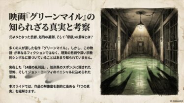 グリーンマイルの実話に関する真相を徹底解説!モデルとされるジョージ・スティニー事件の悲劇やジョン・コーフィの正体、真犯人の謎を深掘りします。なぜグリーンマイルの実話に基づくと噂されるのか、その理由やトラウマ級の描写が持つ意味を知ることで、物語の感動がさらに深まるはずです。